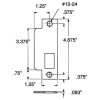 Latch / Deadbolt Entrance Mortise Strike Thickness: 0.093" (2.3mm), brass material Screws: Furnished with 12 combination wood / machine screws. finished to match. Template: Designed to fit metal / wood frames prepared in accordance to ANSI A115.1 / A115.11. Features: Furnished flat with rounded lip edges for universal use with left and right handed locks Curved Lip: Available with a curved lip. Supplied standard with all locks incorporating a solid-type latch Bolt Straight Lip. Size: Base: 1.25" x 4.875" (32 x 124mm) x 1.25" (32mm) Lip to Center Latch and deadbolt function with 2-3/4" backset latch Supplied standard with all locks Anti -friction latch Bolt Straight Lip For use with locks incorporating a .625" (16mm) wide latch Bolt Straight Lip (6000 Series).| MPN | 6041.260.L |