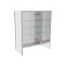 Models available in various widths and in heights of 32" and 38". Available in Single and Double door models featuring doors mirrored both sides and a mirrored interior back wall to allow for a maximum viewing angles.Side panel trim kits in mirror or aluminum finish for surface mounting and gangbox joiner kits available separately for joining one or more cabinets together.