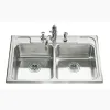 Kohler 33 X 22 Inch Self Rimming Duble Bowl 4 Holes Kitchen Sink In Stainless Steel K3346-4-SS